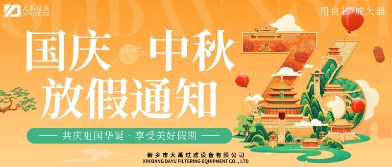 尊敬的客戶及合作伙伴:秋風(fēng)送爽,丹桂飄香。值此國慶與中秋雙節(jié)來臨之際,謹(jǐn)向您及家人致以zui誠摯的節(jié)日祝福!根據(jù)國家法定節(jié)假日安排,結(jié)合公司實(shí)際情況,現(xiàn)將2025年國慶+中秋雙節(jié)放假安排及相關(guān)事項(xiàng)通知如下:一、放假時(shí)間2025年10月1日(星期三)至10月6日(星期一),共計(jì)6天。10月7日(星期二)起正常上班。9月28日(周日)、10月12日(周日)補(bǔ)班。二、業(yè)務(wù)服務(wù)說明放假期間,公司線上咨詢通道保持暢通。銷售人員將不定期查看并回復(fù)您的咨詢,但受假期影響,可能存在回復(fù)延遲的情況,敬請諒解。如遇緊急事項(xiàng),您可撥打以下熱線:王經(jīng)理13613905650;李經(jīng)理13839073363,我們將竭誠為您服務(wù)。三、生產(chǎn)安排提醒因車間節(jié)前生產(chǎn)訂單已排滿,為確保假期前后生產(chǎn)質(zhì)量與效率,放假期間(10月1日至10月6日)將暫停安排新生產(chǎn)訂單生產(chǎn)。節(jié)前已下單的訂單將按原計(jì)劃正常推進(jìn),放假期間新接訂單將統(tǒng)一順延至10月7日復(fù)工后,按序安排生產(chǎn)。由此帶來的不便,我們深表歉意,感謝您的理解與支持。四、溫馨提示假期出行請注意安全,做好個(gè)人防護(hù)。公司官網(wǎng)及社交媒體平臺(tái)將持續(xù)更新節(jié)日動(dòng)態(tài)及服務(wù)資訊,歡迎隨時(shí)關(guān)注。佳節(jié)共團(tuán)圓,服務(wù)不間斷。值此雙節(jié)同慶的美好時(shí)刻,衷心感謝您長期以來對我司的信任與支持!我們期待在節(jié)后以更飽滿的熱情、更優(yōu).質(zhì)的服務(wù)與您攜手同行,共啟新程!此致敬禮!新鄉(xiāng)市大禹過濾設(shè)備有限公司2025年9月28日